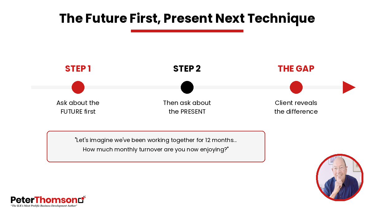 This is the Contrast Principle in action. And it all starts with asking about the future first, present next.