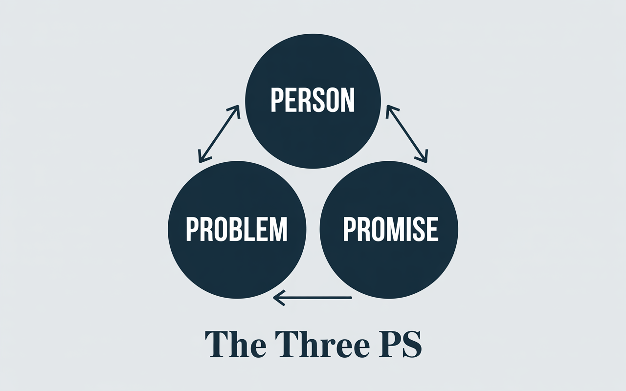 Closely related to the ABC framework is a simple idea that I find useful when helping professionals structure any communication, whether that is a conversation with a prospective client, a piece of marketing copy, or a book title.