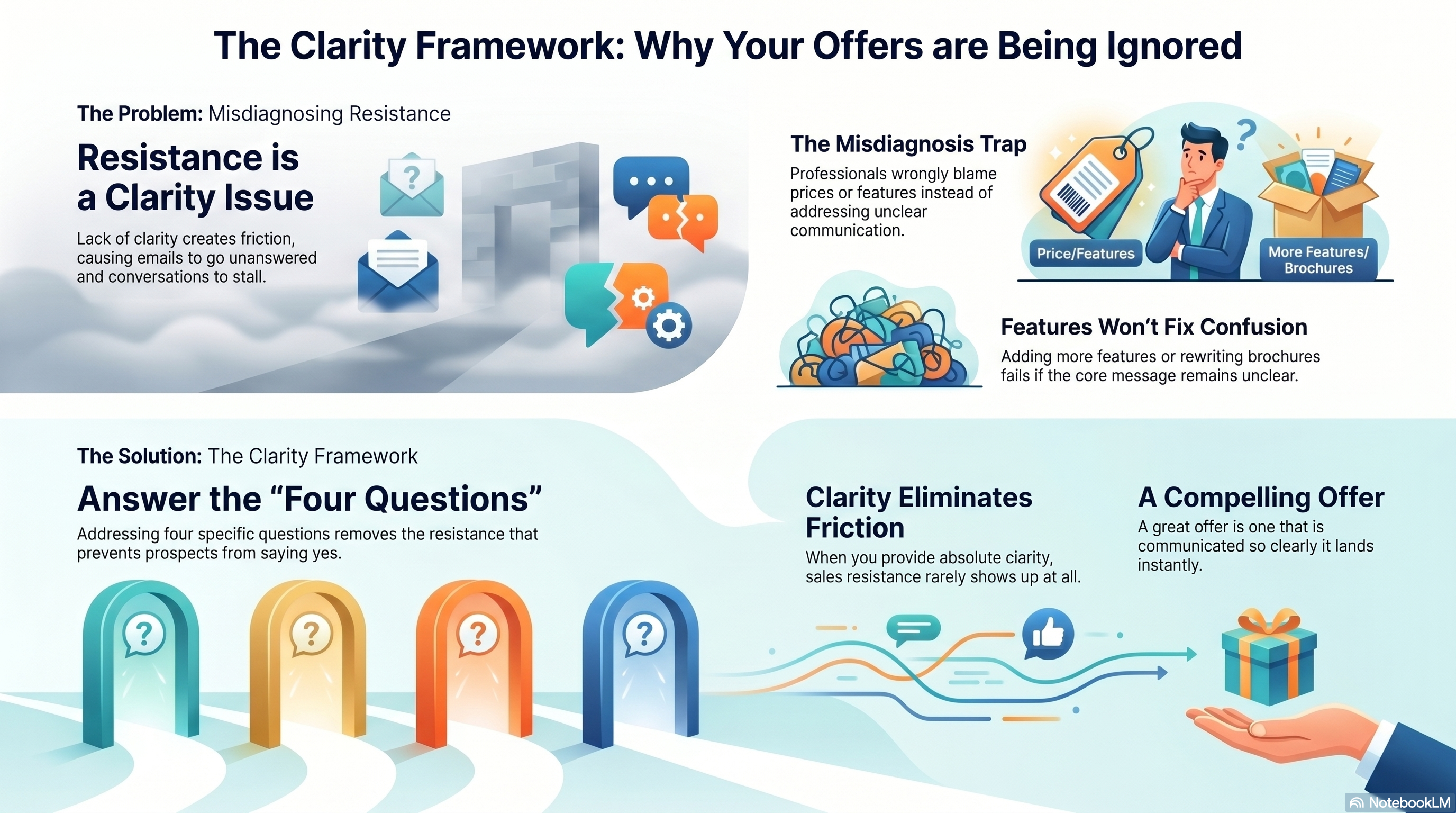 A professional has something genuinely valuable to offer. Their service works. Their clients get real results. And yet they consistently struggle to communicate what they do in a way that lands. Emails go unanswered. Conversations stall. Proposals come back with polite declines, or worse, no response at all.